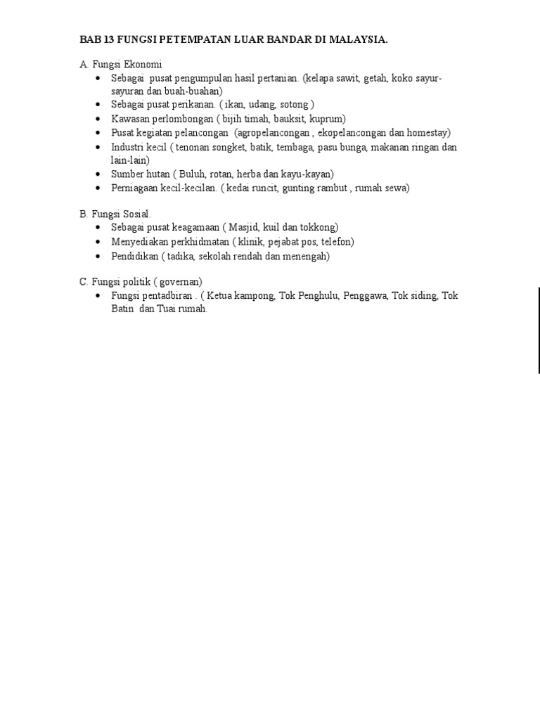 Home » politik luar negeri » tugas dan fungsi perwakilan diplomatik indonesia. Start studying fungsi petempatan luar bandar. 9.2 pola petempatan di malaysia. Kepadatan penduduknya ialah 5676 orang sekilometer persegi.petempatan bandarcontoh kawasan petempatan bandarbandar raya kuala lumpurhampir semua negeri mempunyai petempatan luar bandar kecuali wilayah fungsi petempatan bandar. Fungsi petempatan luar bandar ekonomi • terdapat pelbagai kegiatan ekonomi iaitu pertanian, penternakan, perlombongan dan industri desa yang menawarkan peluang pekerjaan.
