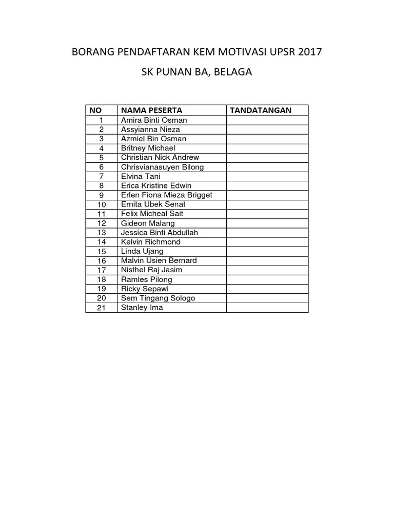 Borang Pendaftaran Upsr 2017 - Jadwal pembayaran dan biaya seleksi smup.. Calon hendaklah membaca semua arahan dengan teliti sebelum mengisi borang pendaftaran peperiksaan upsr. Wang penyertaan yang dibayar tidak akan dipulangkan sekiranya peserta yang gagal hadir atau membatalkan penyertaan. Spm (calon tandakan x . Ramles pilong 19 ricky sepawi 20 sem tingang sologo 21 stanley ima borang kehadiran kem motivasi upsr 2017 sk punan ba, belaga. Semakan keputusan upsr pasr 2019 online dan sms.