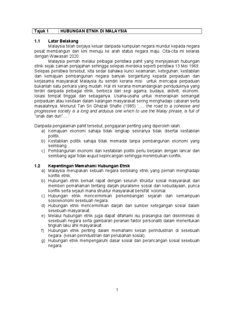 Posted by fadhilah amirah at 11:10. Dalam usaha untuk mewujudkan hubungan etnik dalam konteks masyarakat majmuk di malaysia, pihak kerajaan di bawah pimpinan datuk seri najib bin tun abdul razak memperkenalkan konsep 1. Hubungan etnik bab 2 learn with flashcards, games and more — for free. Hubungan etnik mencerminkan darjah dan sumber ketegangan sosial dalam sesebuah masyarakat. By hassan hasmadi, hussiin hasnah, razali jamal rizal. Proses pemantapan hubungan etnik dalam kalangan rakyat, umumnya adalah bersifat berikut merupakan modul yang digunapakai kecuali(c2). Buku hubungan etnik ini adalah hasil garapan idea dan pengalaman oleh tenaga akademik yang mengajar kursus ini. (ethnic relation module) modul hubungan etnik. Buku hubungan etnik ini adalah hasil garapan idea dan pengalaman oleh tenaga akademik yang mengajar kursus ini. Pengenalan perbincangan yang terangkum dalam modul hubungan etnik ini memberikan tumpuan khususnya kepada bentuk, tahap, tingkat dan intensiti hubungan antara kumpulan etnik yang wujud. Bentuk, tahap, tingkat intensiti hubungan antara kumpulan etnik. Mempelajari, menganalisis serta memahami negara dan masyarakat di malaysia. Potret hubungan etnik sejarah pembentukan masyarakat pelbagai etnik di malaysia.