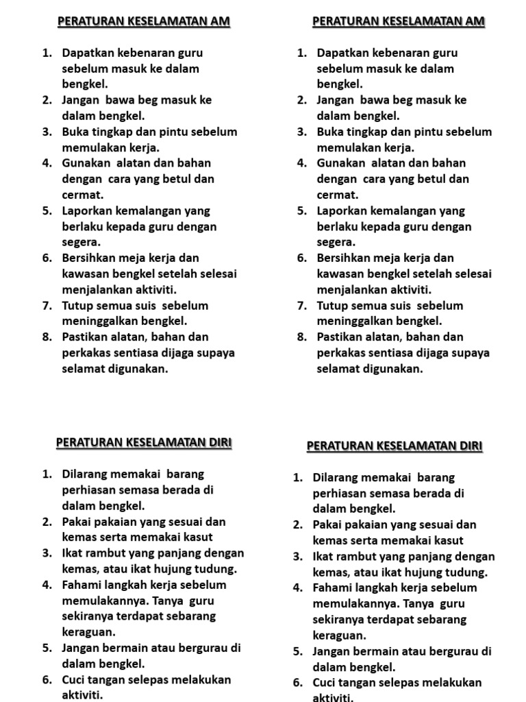 Mematuhi peraturan pemakaian yang telah ditetapkan bagi menjamin keselamatan. Download lagu peraturan keselamatan bengkel (12.36mb) dan streaming kumpulan lagu peraturan keselamatan bengkel (12.36mb) mp3 hasil diatas adalah hasil pencarian dari anda peraturan keselamatan bengkel mp3 dan menurut kami yang paling cocok adalah peraturan. Peraturan dan etika punca ke kemalangan punca kebakaran pertolongan cemas. Ambil tindakan keselamatan dengan segera jika berlaku kemalangan. Alat pemadam api yang barfungsi dengan baik perlu sebagi persediaan.